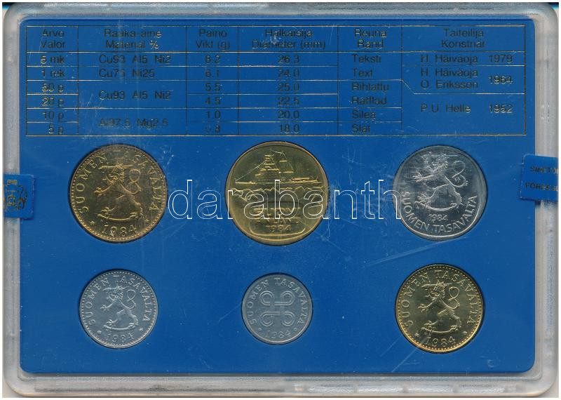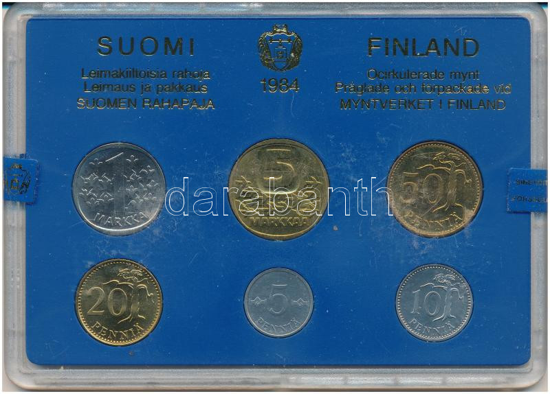 Fin... https://www.darabanth.com/hu/510-Gyorsarveres/510.0/Numizmatika/Kulfoldi-forgalmi-sorok~700/Finnorszag-1984-5p-5M-6xklf-forgalmi-sor-muanyag-tokban-TAU3Cbr-3E-Finland-1984-5-Pennia-~II3429374
