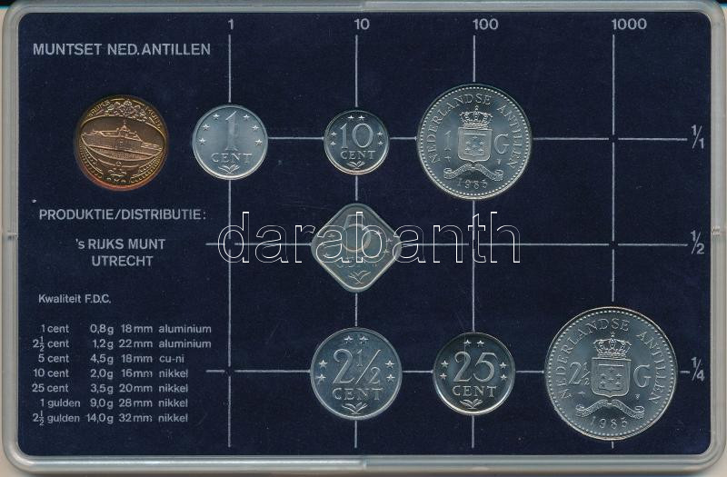 Holland Antillák 1985. 1c - 2 1/2G (7xklf) forgalmi sor + "Rijks Munt" Cu zseton műanyag dísztokban T:UNC