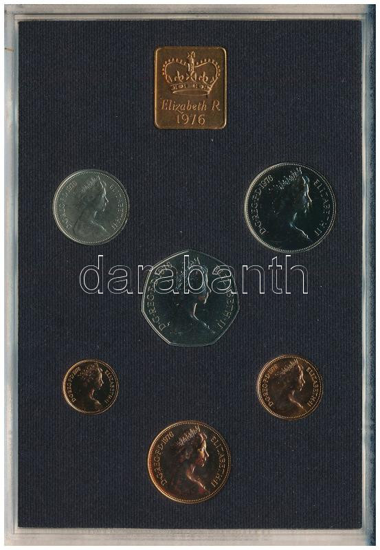 Nagy-Britannia 1976. 1/2p-50p (6xklf) hivatalos forgalmi sor lezárt dísztokban, borítékban + "1976. Elizabeth R / Royal Mint" verdei zsetonnal T:PP