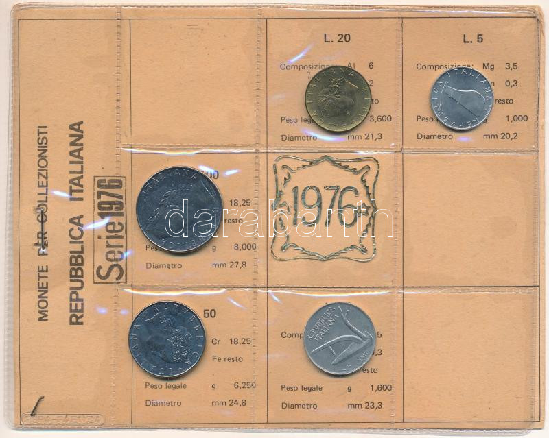 Ital... https://www.darabanth.com/hu/510-Gyorsarveres/510.0/Numizmatika/Kulfoldi-forgalmi-sorok~700/Olaszorszag-1976-5L-100L-5xklf-forgalmi-sor-foliatokban-TUNC3Cbr-3E-Italy-1976-5-Lire-100-L~II3429381