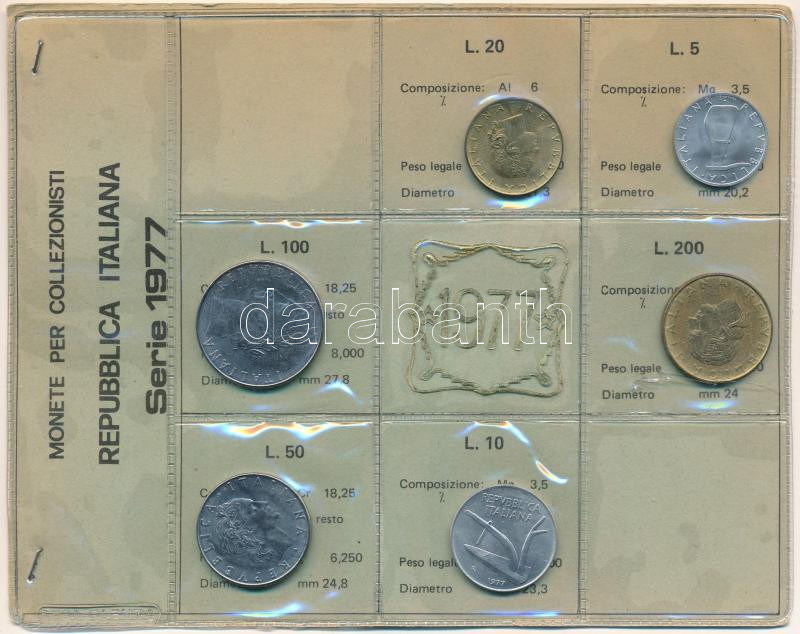 Ital... https://www.darabanth.com/hu/510-Gyorsarveres/510.0/Numizmatika/Kulfoldi-forgalmi-sorok~700/Olaszorszag-1977-5L-200L-6xklf-forgalmi-sor-foliatokban-TUNC3Cbr-3E-Italy-1977-5-Lire-200-L~II3429382