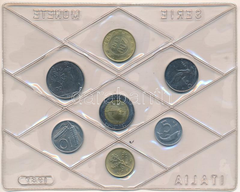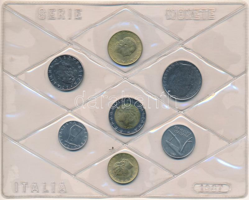 Ital... https://www.darabanth.com/hu/510-Gyorsarveres/510.0/Numizmatika/Kulfoldi-forgalmi-sorok~700/Olaszorszag-1987-5L-500L-7xklf-forgalmi-sor-foliatokban-TUNC3Cbr-3E-Italy-1987-5-Lire-500-L~II3429376