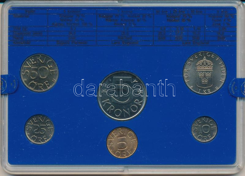 Leírás: Svédország 1979. 10ö - 5K (6xklf) forgalmi sor műanyag tokban T:UNC