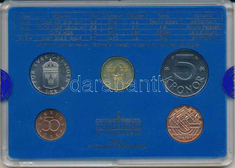 Svédország 1995. 50ö - 10K (4xklf) forgalmi sor műanyag tokban, emlékéremmel T:UNC