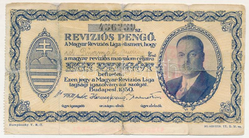 1930. 1P "Revíziós Pengő" T:G ragasztott