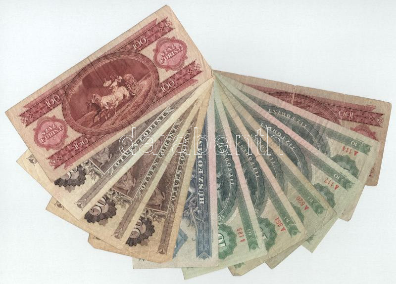 Leírás: 1949. 100Ft + 1962-1975. 10Ft (5db, 3xklf) + 1980. 20Ft + 1986. 50Ft (2x) + 1989. 50Ft + 1992. 100Ft T:F,VG