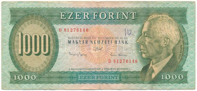 Leírás: 1993. 1000Ft "D 81276146" T:F,VG