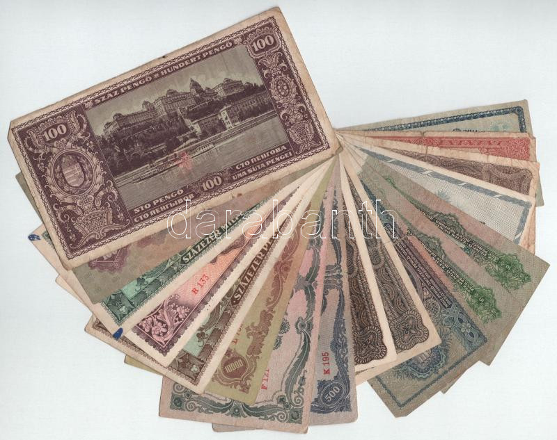 Leírás: Vegyes, 17db-os magyar bankjegy tétel, benne: 1920. 1K-20K (5xklf) + 1936-1946. 10P-1.000.000.000P (10xklf) + 1946. 100.000MP + 500.000AP T:Pr-F