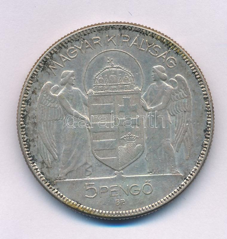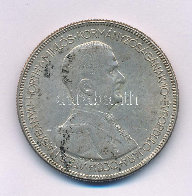 Leírás: 1930. 5P Ag "Horthy jobbra " hajas T:XF, patina