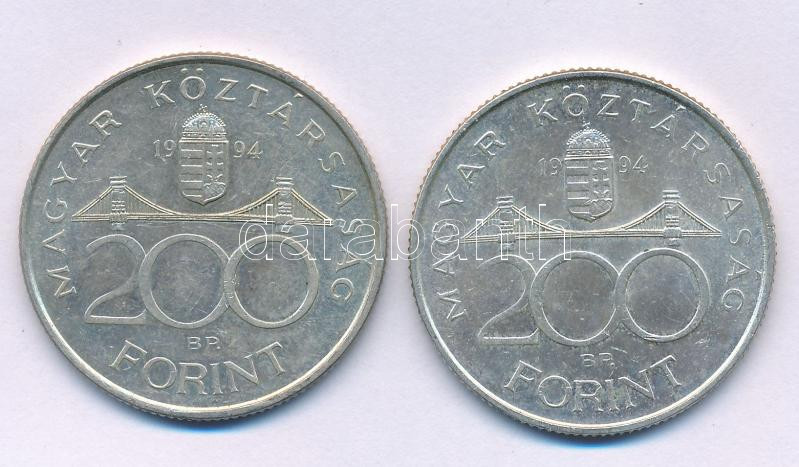 1994. 200Ft Ag "Deák" (2x) T:AU,XF patina