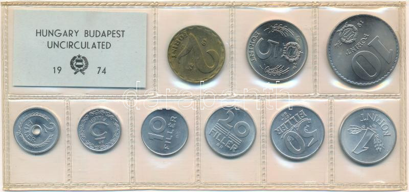 Leírás: 1974. 2f-10Ft (9xklf) érmés forgalmi sor fóliatokban T:UNC kis patina Adamo FO7