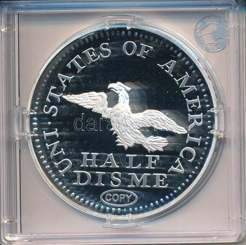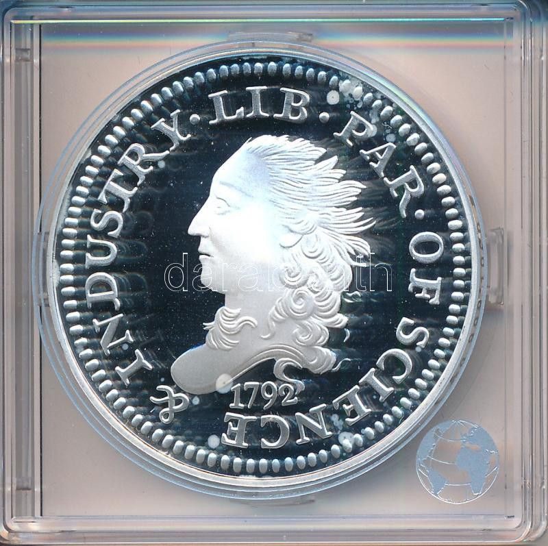"1792-es 5c érmének jelzett utánverete" Ag (20g/0.999/40mm) kapszulában, tanúsítvánnyal T:PP, foltos