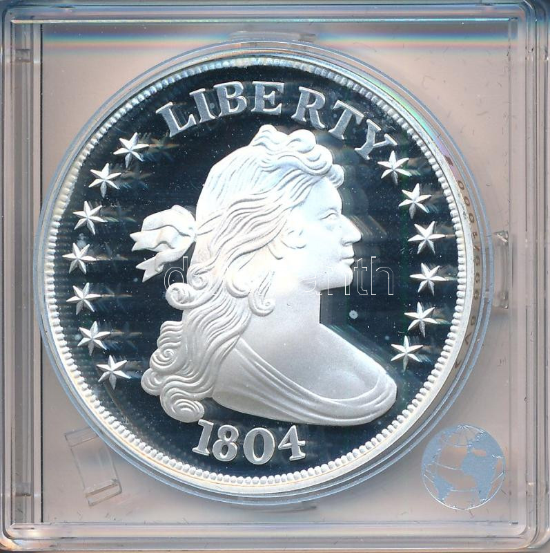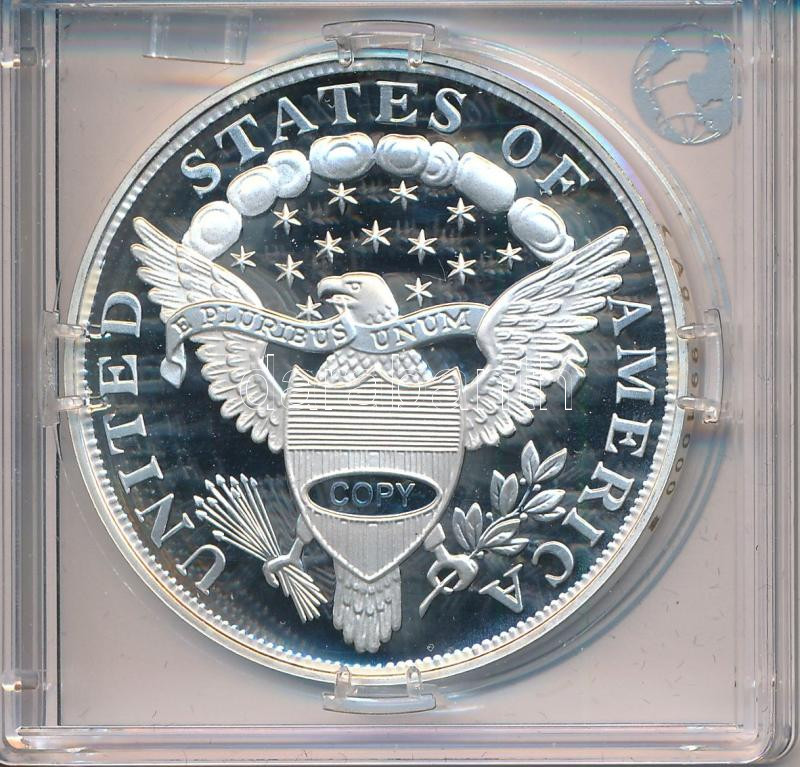 "1804-es "Dexter" 1$ érmének jelzett utánverete" Ag (20g/0.999/40mm) kapszulában, tanúsítvánnyal T:PP, folt