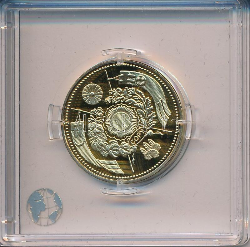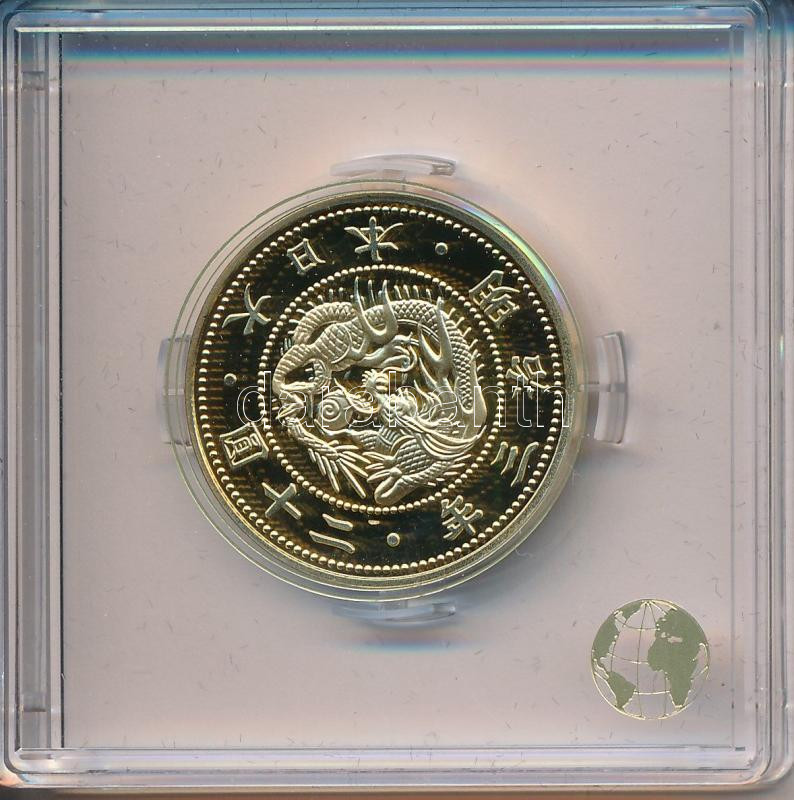 "1870-es Japán 20 jen érmének jelzett utánverete" aranyozott Ag (10g/0.999/25mm) kapszulában, tanúsítvánnyal T:PP