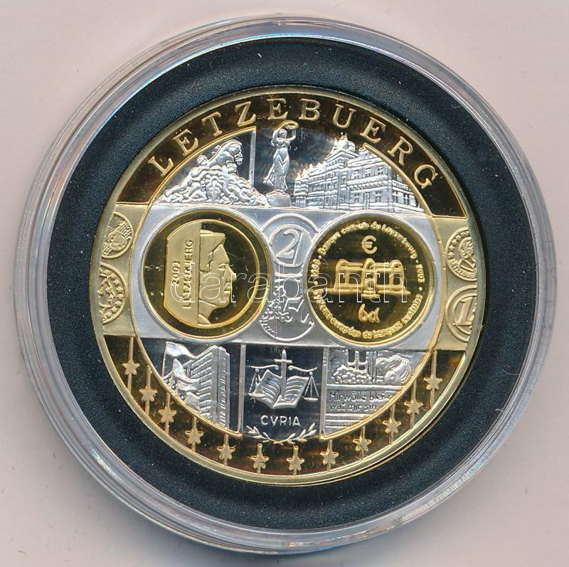 Leírás: 2002-2010 k. "Emlékérem az euróövezet országainak közös valutájáról - Luxemburg" aranyozott, ezüstözött Cu-Ni emlékérem kapszulában, tanúsítvánnyal (35mm) T:PP