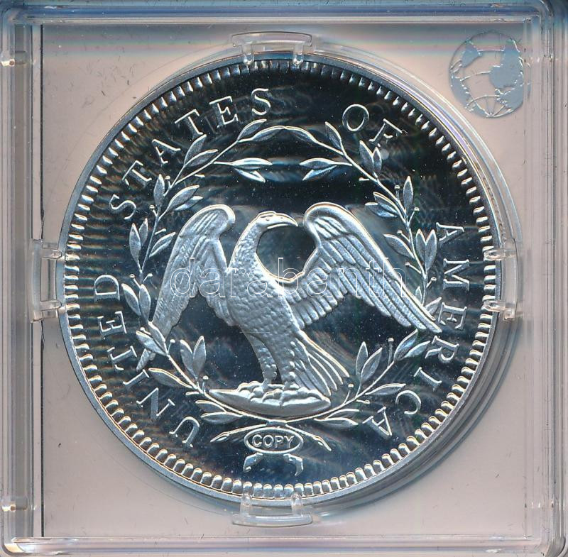 "Amerikai 1794-es 1$ "Szabadság dollár" érmének jelzett utánverete" Ag (20g/0.999/40mm) kapszulában, tanúsítvánnyal T:PP foltos