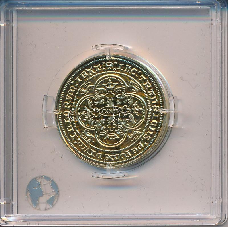 "Anglia Dupla leopárd érméjének jelzett utánverete" aranyozott Ag (10g/0.999/25mm) kapszulában, tanúsítvánnyal T:PP