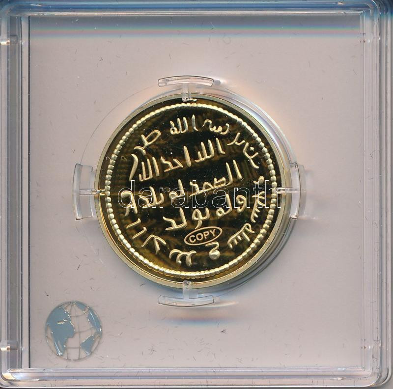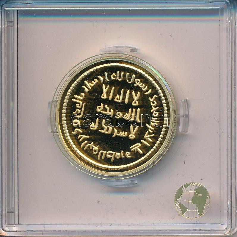 "Első iszlám arany dinár érmének jelzett utánverete" aranyozott Ag (10g/0.999/25mm) kapszulában, tanúsítvánnyal T:PP