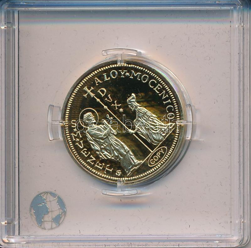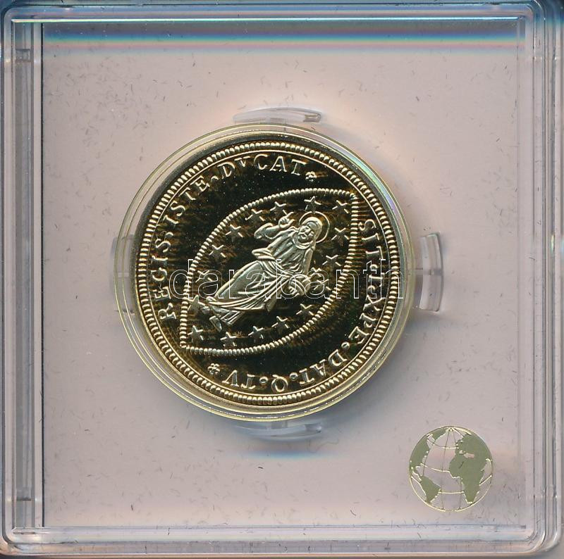 "Velencei arany zecchinó érmének jelzett utánverete" aranyozott Ag (10g/0.999/25mm) kapszulában, tanúsítvánnyal T:PP
