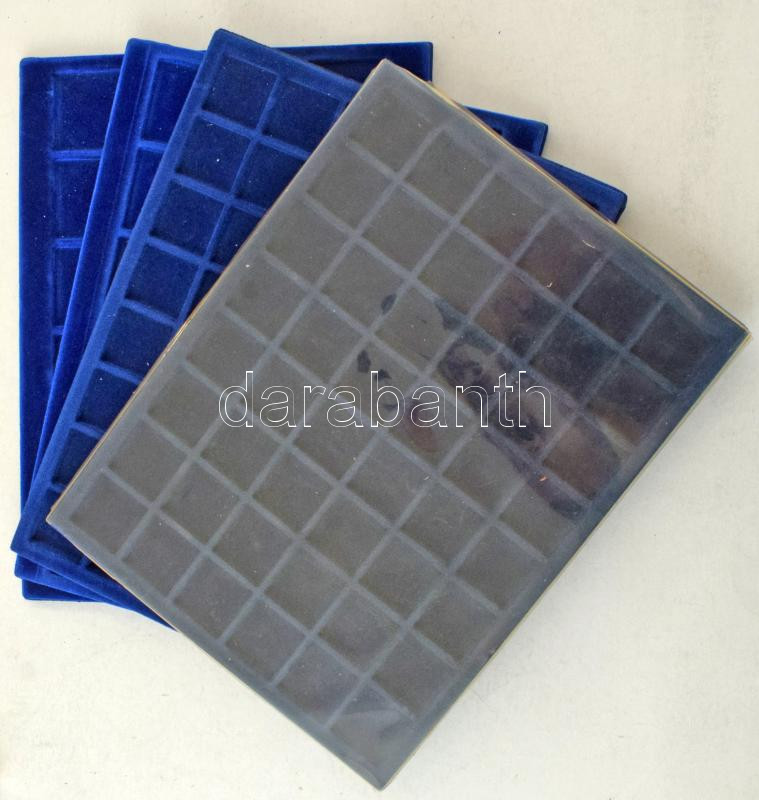 Leírás: 4db-os nagyméretű (238x313mm) éremtartó tálca tétel, összesen 144 férőhellyel, használt, de jó állapotban