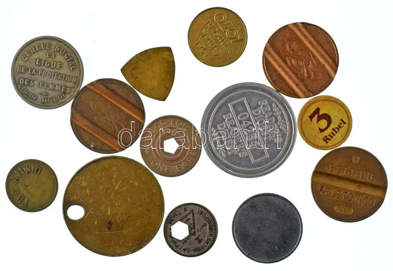 Vegyes, 13-dbos külföldi zseton / bárca tétel T:AU-VF