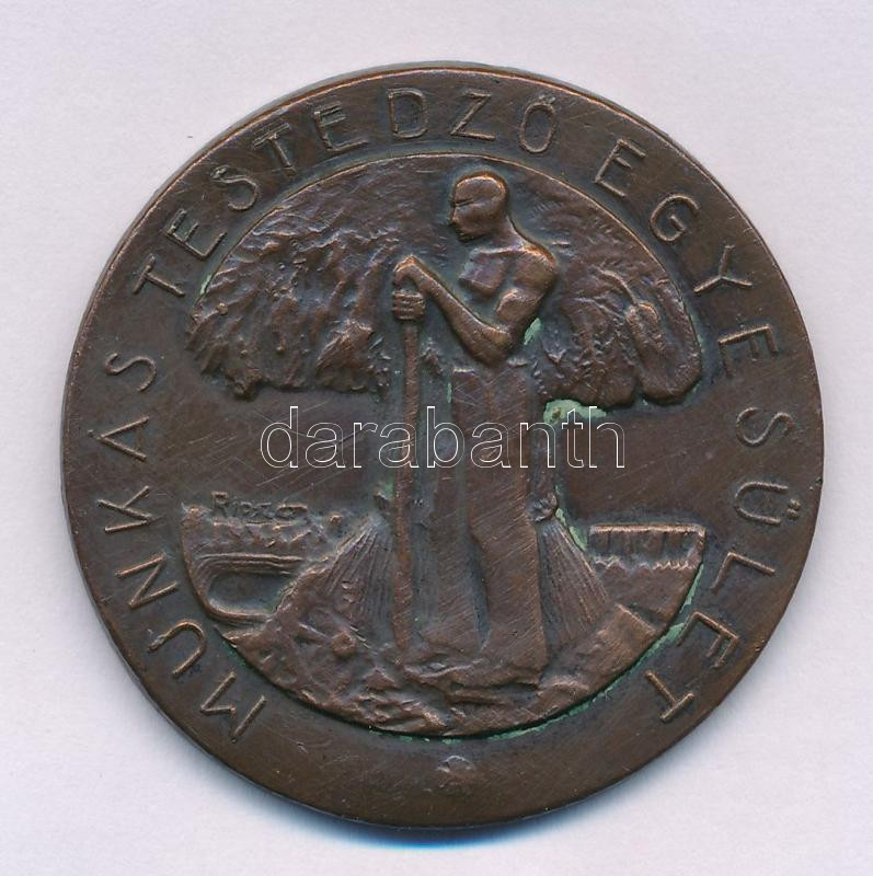 1930 k. "Munkás Testedző Egyesület / 1908" kétoldalas bronz díjérem, hátoldalán gravírozva és "Ludvig" gyártói jelzéssel. Szign.: Ripszám Henrik (1889-1976) (40mm) T:XF kis patina, ph.