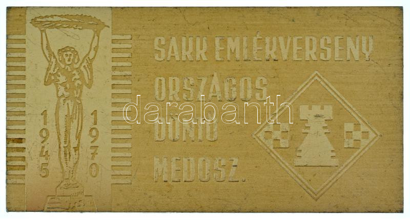 Leírás: 1970. Mezőgazdasági Dolgozók Szakszervezete "1945-1970 Sakk Emlékverseny Országos Döntő MEDOSZ. " egyoldalas Al emlékplakett T:XF