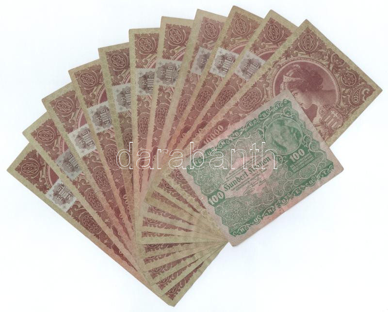 Austria 1922. 100 Corona + Hungary 1945. 10.000 Pengő (11x) C:F