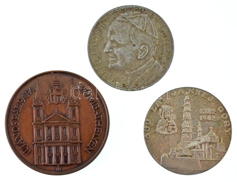 Fritz Mihály (1947-) 1991. "II. János Pál Pápa Szombathelyen 1991. Augusztus 16-20" bronz emlékérem (42,5mm) + Lengyelország 1982. "II. János Pál Pápa / Jasna Góra-i kolostor 600 éves 1382-1982" kétoldalas fém emlékérem (35mm) + DN "II. János Pál Pápa" kétoldalas fém emlékérem (35mm) T:AU,VF, patina