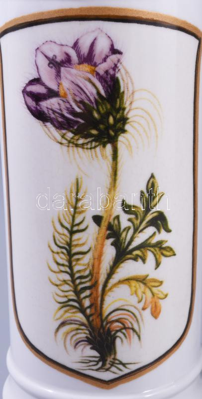 Leírás: 4 darab modern patikai üveg, 3 darab porcelán és egy királykék üveg, m: 24,5 cm alatt