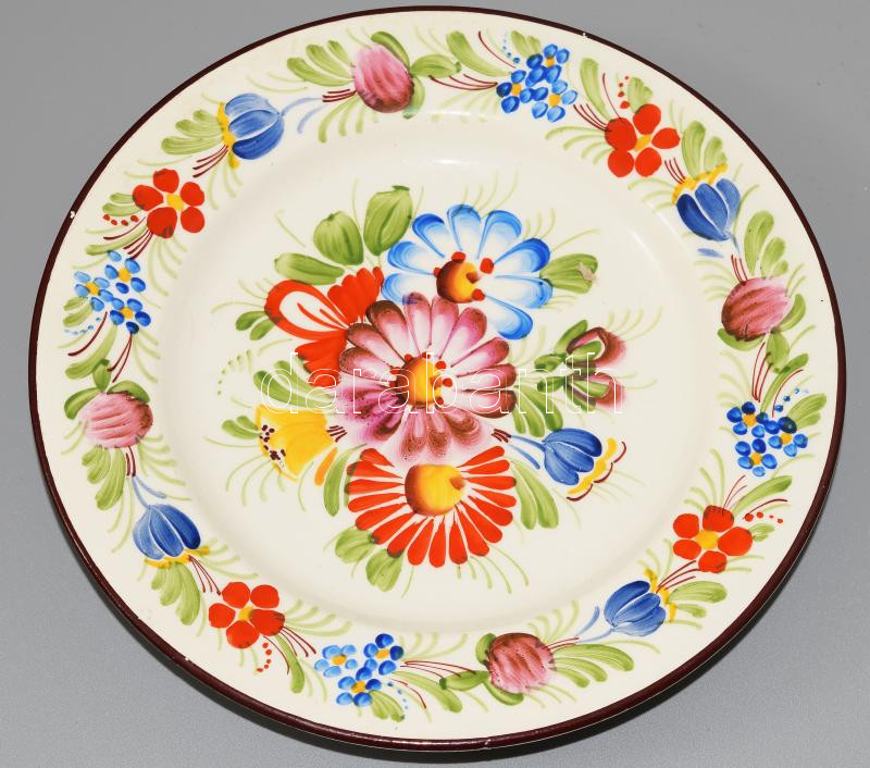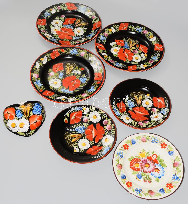 Leírás: Ditmar 6 darab dísztál és egy falidísz, jelzett, kopással, d: 23 cm