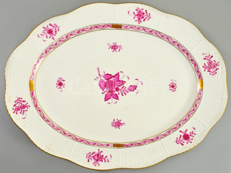 Leírás: Herendi Apponyi pupur mintás pecsenyés kínáló. Jelzett, aranyozáson kopással, 36,5x28 cm