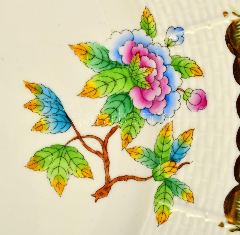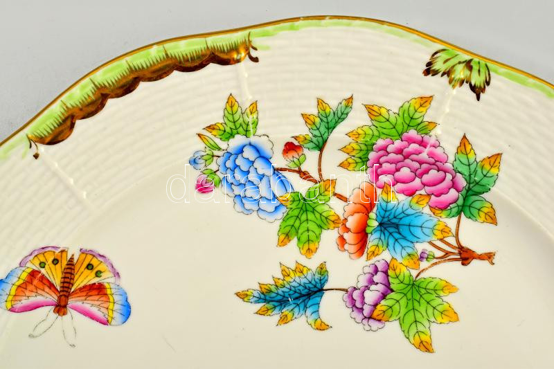 Leírás: Herendi Viktória mintás süteményes kínálótál. Jelzett, kopással, d: 29,5 cm