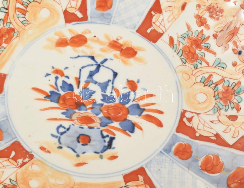 Japán Arita Imari porcelán tál. XIX sz. Kézzel festett, jelzett, kis l... https://www.darabanth.com/hu/510-Gyorsarveres/510.0/Porcelan-keramia-uveg/Porcelan~1107/Japan-Arita-Imari-porcelan-tal-XIX-sz-Kezzel-festett-jelzett-kis-lepattanassal-d-31-cm~II3438627