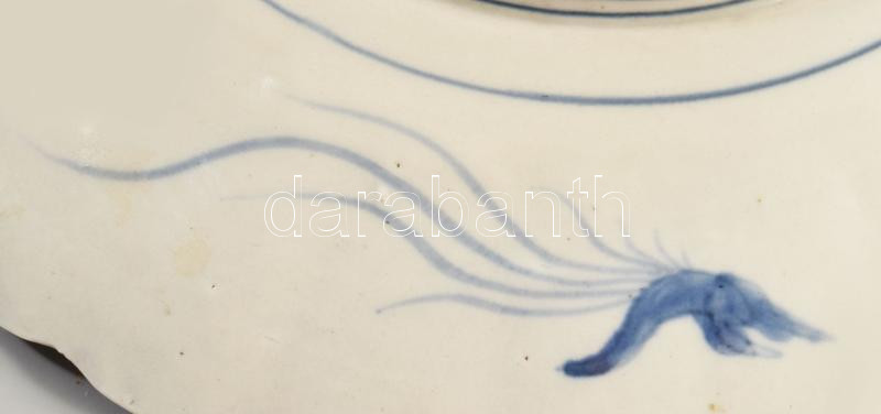 Leírás: Japán Arita Imari porcelán tál. XIX sz. Kézzel festett, jelzett, kis lepattanással d: 31 cm