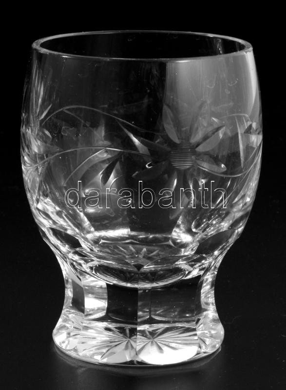 Leírás: 10 darabos ólomkristály italos készlet, köszörült mintával, m: 8,5 cm