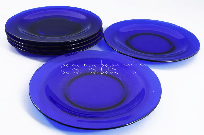 Leírás: 6 darabos anyagában színezett királykék süteményes tányér garnitúra, hibátlan, d: 21 cm