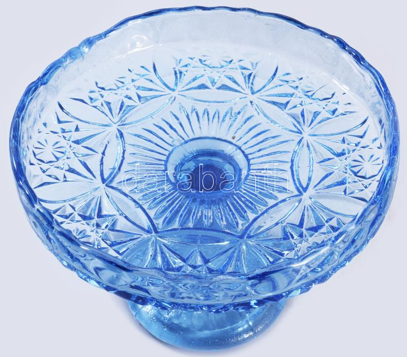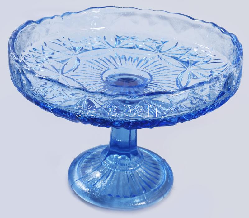 Leírás: Anyagában színezett kék talpas kínáló, lepattanással, d: 23 cm, m: 18 cm