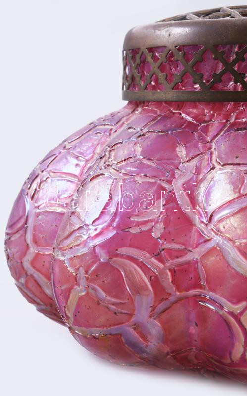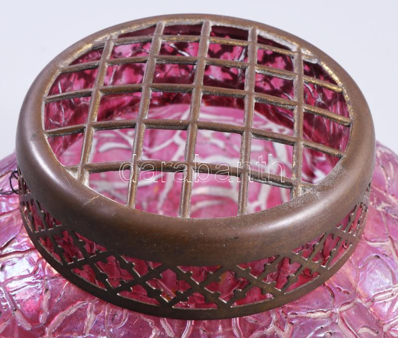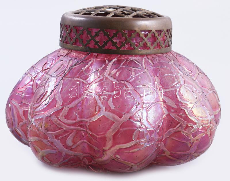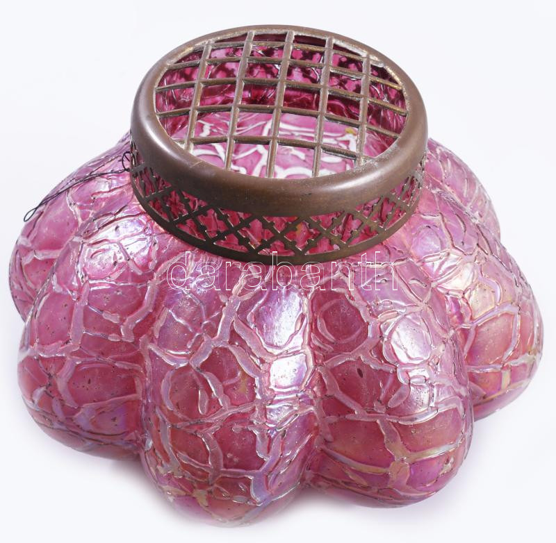 Leírás: Art deco ikebana váza. Többrétegű, formába fújt, lüszter mázas, hibátlan,. d: 16 cm, m: 12 cm