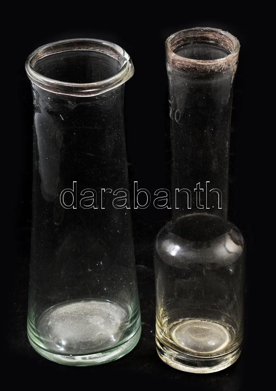 Leírás: Befőttes üveg és palack. Zemplén, 19. sz. második fele, palack szája (készítésből eredően?) pattogzott, m: 18-20 cm