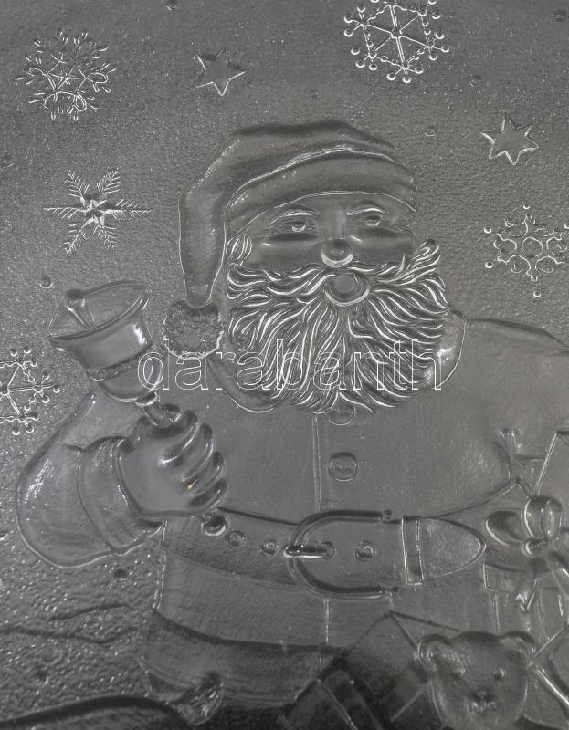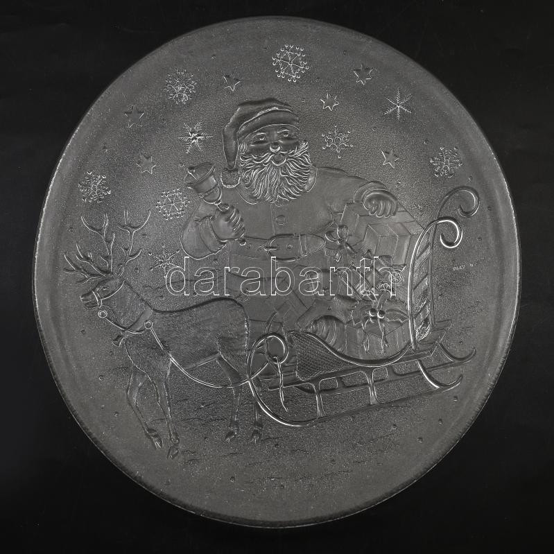 Leírás: Karácsonyi mintás üveg kínáló, asztalközép, hibátlan, d: 32 cm