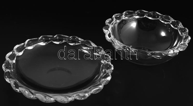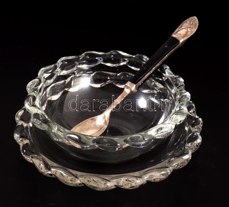 Leírás: Kristályüveg pástétomkínáló szett, ezüstözött kanállal, kétrészes, d: 18 cm