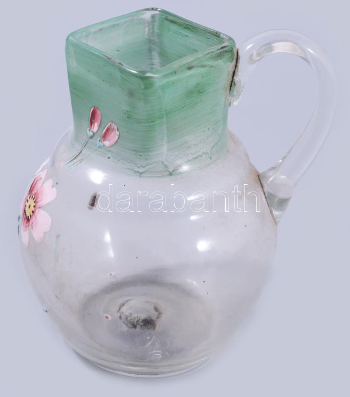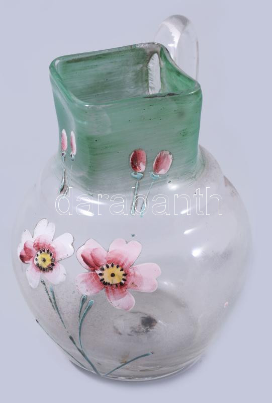 Szecessziós kiöntő, zománcfestett, m: 12 cm https://www.darabanth.com/hu/510-Gyorsarveres/510.0/Porcelan-keramia-uveg/Uvegtargyak~788/Szecesszios-kionto-zomancfestett-m-12-cm~II3448694