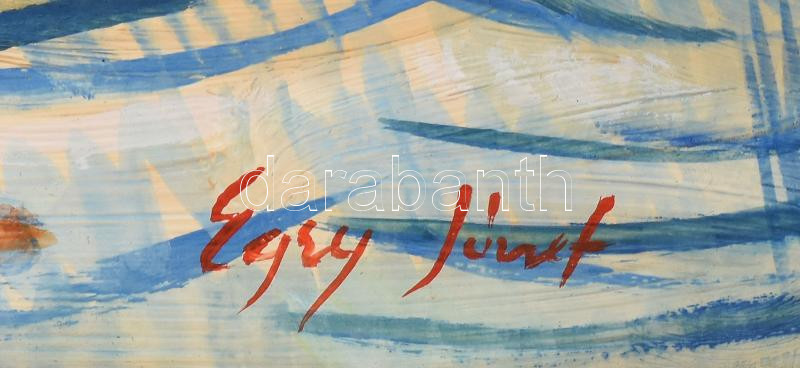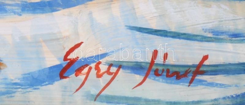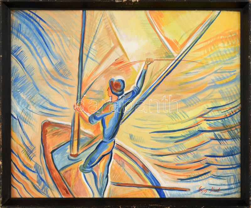 Leírás: Egry József jelzéssel: Vitorlás. Tempera, farost, üvegezett fakeretben, 35×43 cm