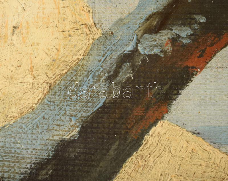 Ulrich Géza (1881-1943): Turka (Az I. világháború csatája), 1914. Olaj, vászon, kartonon. 23,5x38 cm Keretben.