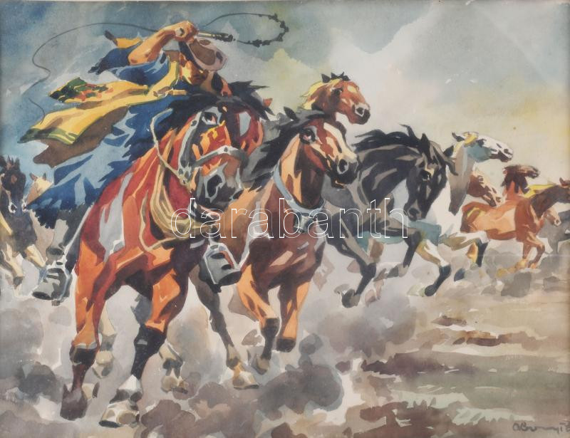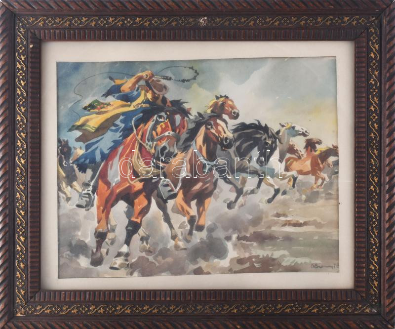 Abonyi Ernő (1884-1941): Csikós vágató lovakkal. Akvarell, papír, jelz... https://www.darabanth.com/hu/511-Festmeny-grafika-plakat-ex-libris-arveres/511.0/Festmenyek-es-grafikak/Festmenyek-es-grafikak~8/Abonyi-Erno-1884-1941-Csikos-vagato-lovakkal-Akvarell-papir-jelzett-uvegezett-fakeretbe~II3464212