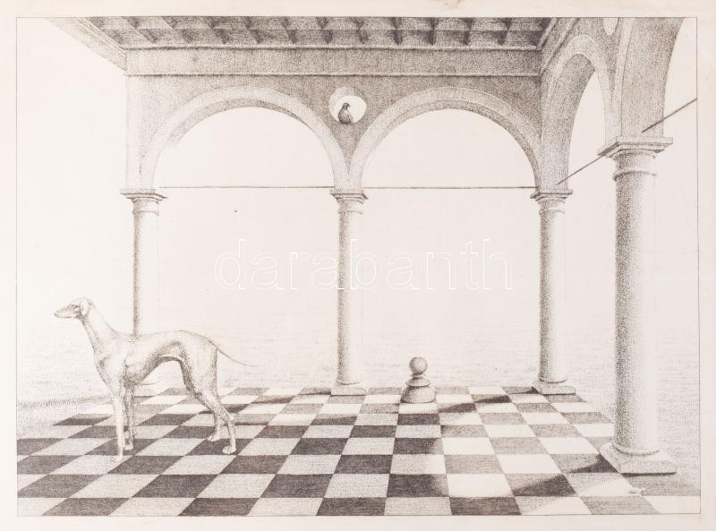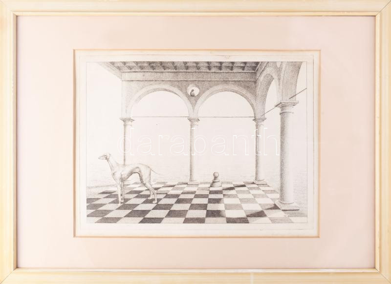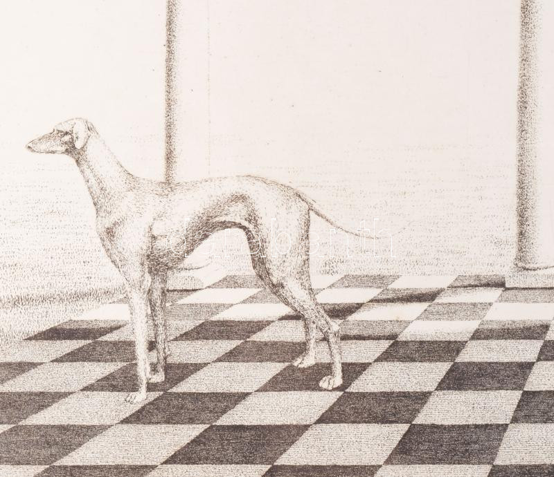 Leírás: Artner Margit (1954-): Az agár. Rézkarc, papír, jelzett. Üvegezett fakeretben. 29×39,5 cm