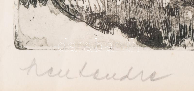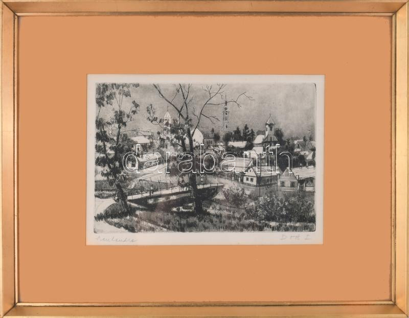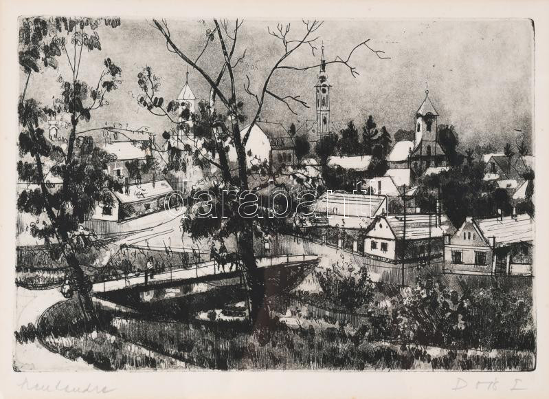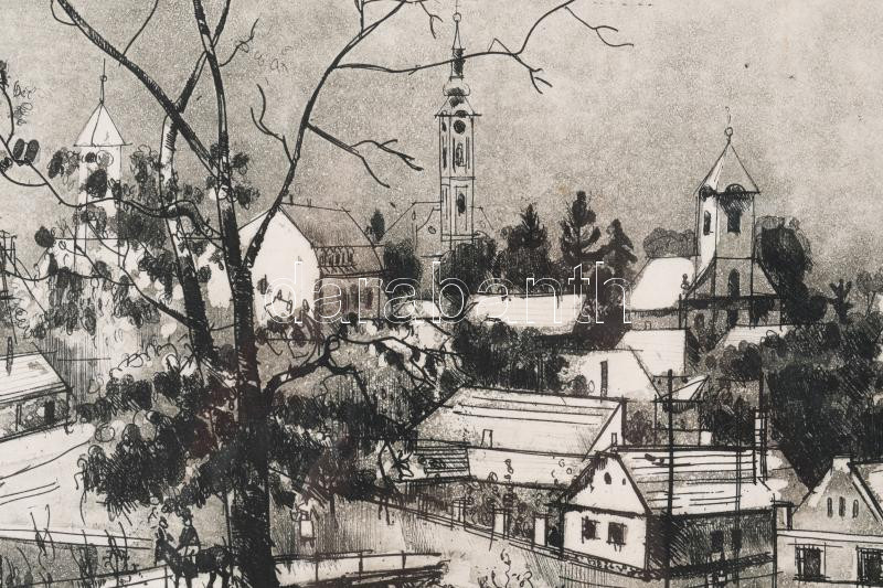 Leírás: Doór Ferenc (1918-2015): Szentendre. Rézkarc, papír, jelzett, üvegezett fakeretben, 19,5x29 cm