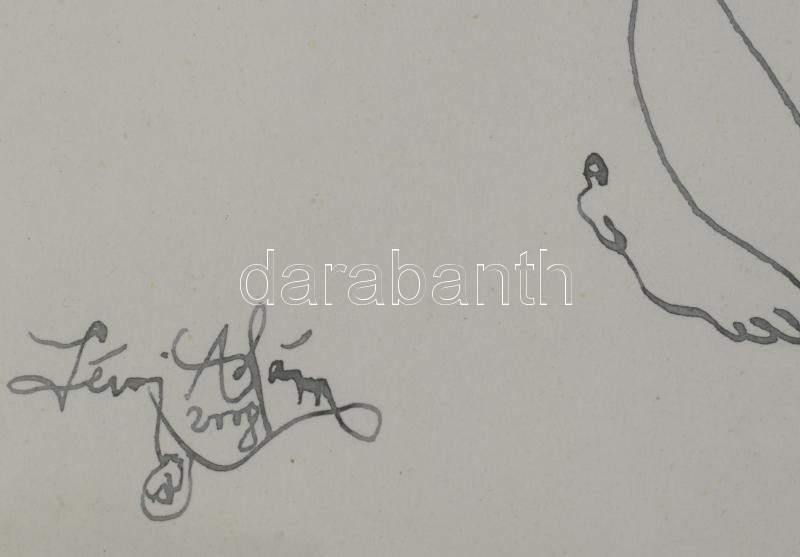 Leírás: Lévai Ádám (1967-): Bábosok harcjátéka, 2008. Tus, papír, jelzett, üvegezett fakeretben. 29x19 cm