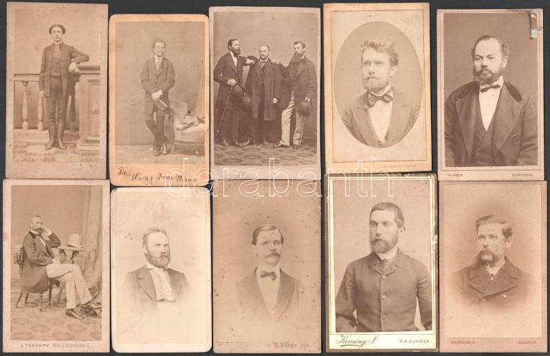 10 db férfiakat ábrázoló vizitkártya, különféle műtermekből (közte Mihály József, Eger; Eduard Benyo junior, Eperjes; Erdősy Rezső, Vác; stb.), változó állapotban
